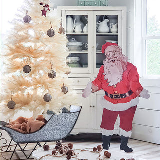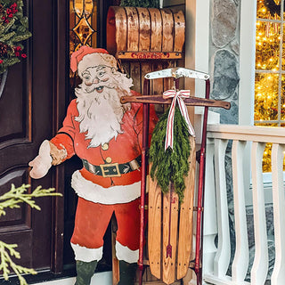 Inspired from the 1950's era, this LIFESIZE (52 Inch Tall) Santa is a necessity for any vintage collectors and ALL Christmas décor lovers! Once we researched and studied the history behind this piece, we fell even more in love with this project... and we know you will appreciate it too! The timeworn finish and faded coloring make this Vintage Santa look like it has served years of use before landing on your doorstep... we LOVE pieces that appear truly vintage but without the hefty price tag! This timeless Lifesize Vintage Santa will be a staple used for years to come and will make a statement anywhere in your home. His seemingly worn finish will tell a story and fill your home with vintage, Christmas charm. Guests, family members and children will be in awe over this new tradition!