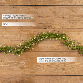 Versatile and charming, the 6-foot Faux Boxwood Garland seamlessly complements a variety of home decor styles. In traditional settings, its classic greenery add a festive touch to mantels or entryways. For rustic farmhouse interiors, the garland enhances the natural ambiance, effortlessly blending with wooden accents and earthy tones. In modern farmhouse living rooms, its clean lines and lifelike foliage bring a refreshing botanical element without overwhelming minimalist aesthetics. Whether used as a centerpiece on a farmhouse dining table or draped along sleek furniture in contemporary homes, this garland offers timeless appeal and flexibility in enhancing any decor theme.