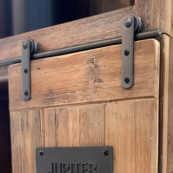 • Vintage Farmhouse Charm: The distressed wood and sliding barn door design elevate any modern farmhouse or rustic-inspired space.