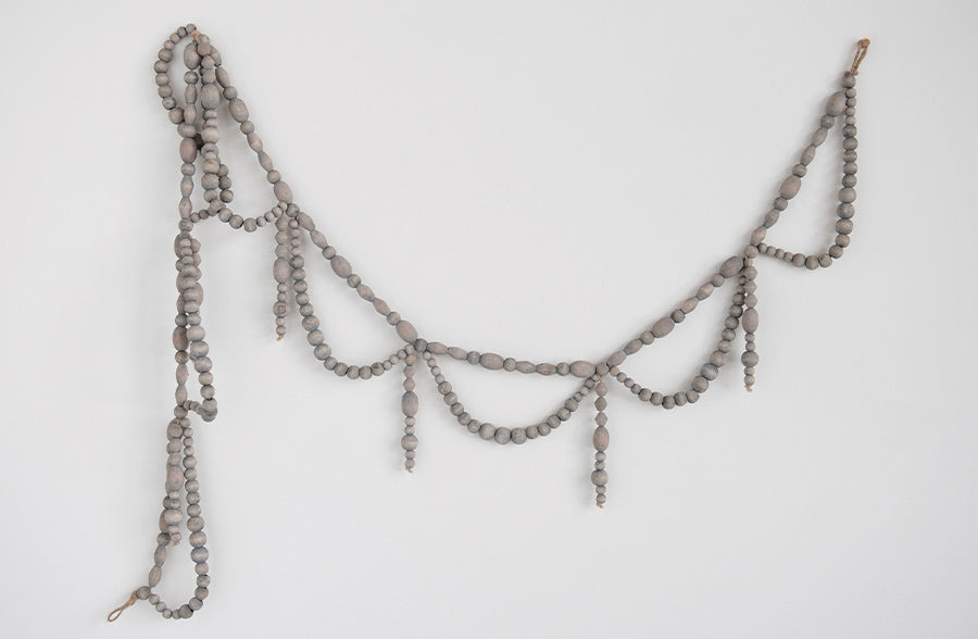 Simple and sweet this wooden bead garland coordinates well with many styles and adds detail and charm to any space. Hang it on a hook or drape it along a mantle shelf or tiered tray and add the perfect finishing touch to your home.