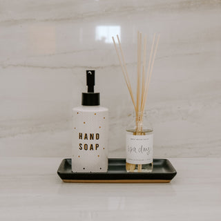 Our whimsical and boho-inspired gold tile hand soap dispensers will upgrade your bathroom or kitchen sink area. We love these for how ecofriendly they are, while at the same time being functional and beautiful. Our refillable hand soap dispensers can be filled with your favorite hand soap over and over again to reduce plastic use while giving your space a stylish update!