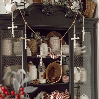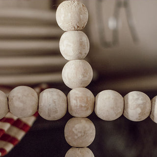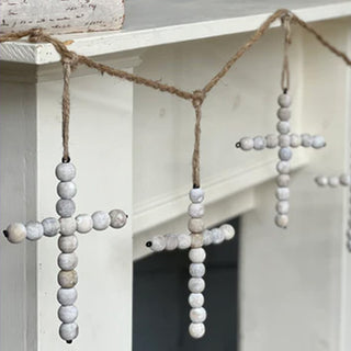 The neutral look of this 82 Inch Cross Wood Bead Garland coordinates well with many styles and adds detail and charm to any space. Hang it on a hook or drape it along a mantle shelf or tiered tray and add the perfect finishing touch to your home’s décor.