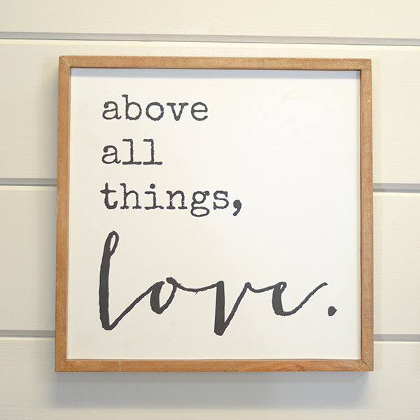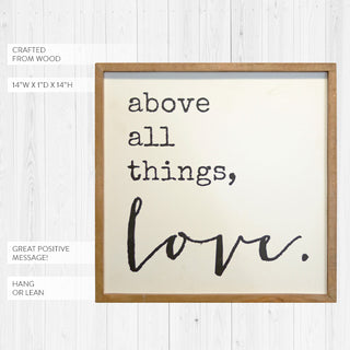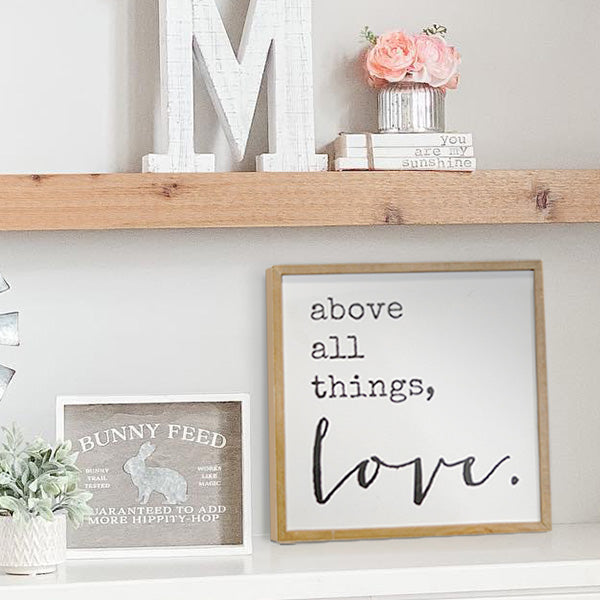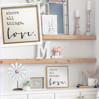 Make our Above All Things Love Sign a focal piece in any room! This sign literally has it ALL! So much farmhouse charm, a beautiful distressed finish AND the sweetest message!