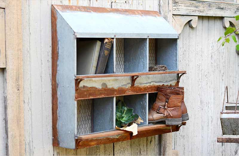 -Beautifully crafted from galvanized metal. Comes ready to hang.