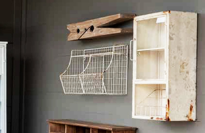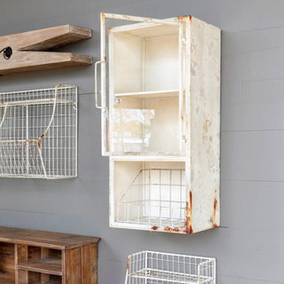 This cabinet is such a lovely piece to display in any space. If you choose to use it in the bathroom you can display your toiletries or use it as a space to store toilet tissue. The entryway would be a lovely spot for this beauty with welcoming florals and candles stored inside. Even the kitchen would be an ideal home for this cabinet it would be fabulous with spices and fruit in the lower shelf space. No matter where this lovely piece ends up it's sure to turn some heads. And not to mention the beautiful worn and distressed metal truly brings out the unique character!
