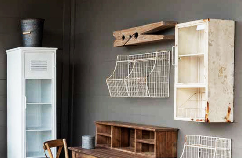 -Crafted from distressed metal with an aged white finish