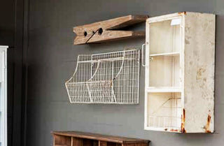 We are OBSESSED with today’s steal! It encompasses true rustic vintage farmhouse finds. It's super versatile and functional…Which we LOVE!! You can use this aged white water closet cabinet virtually anywhere in your home!
