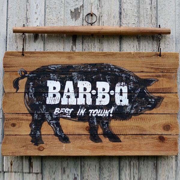 Our vintage style Southern BBQ Pig Sign is inspired by the amazing antique signs that can be found at barbecue eateries throughout the South. Ah we just love the large size and the authentic design!