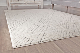 Introducing the Alabaster Area Rug, a stylish addition to enhance your home decor. This beautiful rug features a modern geometric pattern in soft alabaster tones, creating a sophisticated and chic look for any room. The intricate design and neutral color palette make it a versatile piece that seamlessly integrates into your living space.
