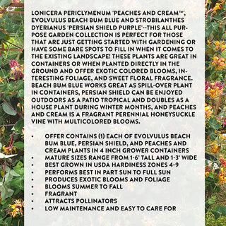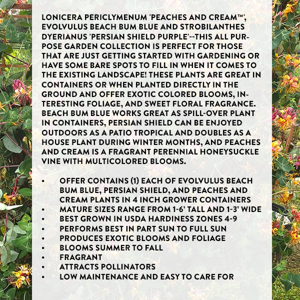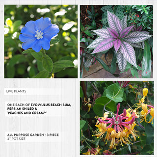 Say hello to your new go-to garden combo! Our All-Purpose Garden, Set of 3 features three complementary LIVE plants that bring color, contrast, and visual interest to any outdoor space. You’ll get: