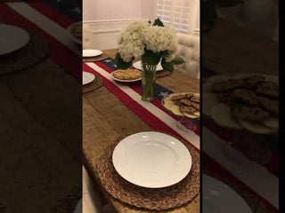 We are so so excited that we came across this beautiful American flag table runner because it will be the PERFECT addition to your Farmhouse space!! We haven't come across many table runners that are this fun and charming.