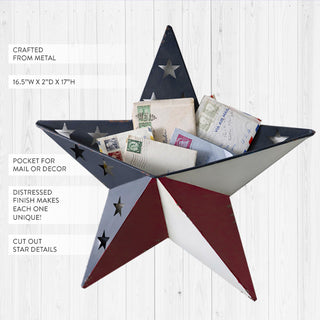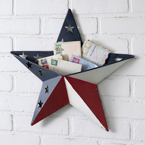 Celebrate America with this American Star Wall Pocket for some patriotic pride! Fill the opening with flowers and hanging greenery or get creative with styling other decor inside! This could also be a fun storage solution to hold your mail, keys, or wallet!