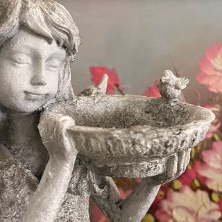 Bring a touch of heavenly charm to your outdoor decor with this Standing Angel with Birdbath—a divine addition to any space! This beautifully detailed statue captures the grace and serenity of an angel in a standing pose, gently cradling a decorative bowl-shaped birdbath with a delicate bird perched atop. This vintage-inspired piece is truly a work of art.