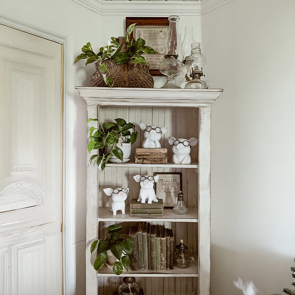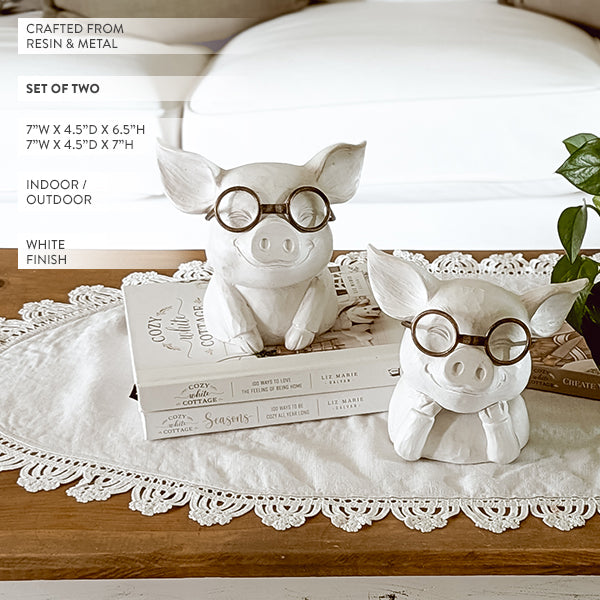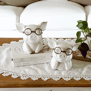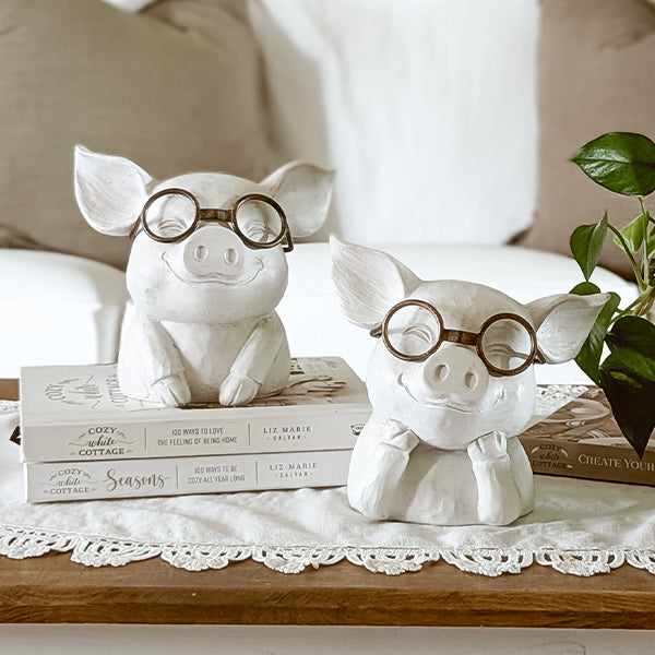 Meet your new favorite duo—our Farmhouse Friends Animal Figurines are here to steal the spotlight and your heart. This charming set of two features a pair of perfectly plump pigs, each donning reading glasses and full of personality. Whether styled on a bookshelf, entryway table, or kitchen counter, they bring a touch of humor and wholesome farmhouse flair to any nook.