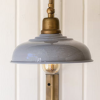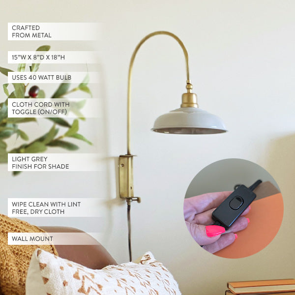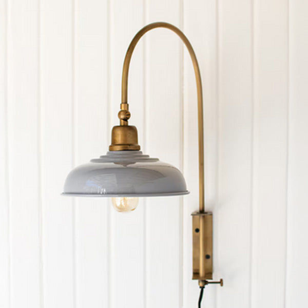 Meet your new lighting crush—our Brass Wall Sconce with Gray Metal Shade! This stunner is serving serious vintage vibes with a modern farmhouse twist that'll make your walls absolutely swoon. With its charming gooseneck arm, dreamy muted gray shade, and that gorgeous warm antiqued brass finish, this little showstopper is ready to transform any corner into your personal sanctuary.