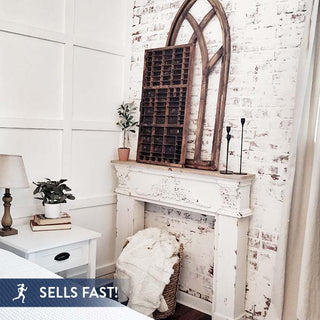 This Distressed Wooden Fireplace Mantel would look AHH-mazing lined within your farmhouse decor with photos, old books, flowers, potted plants, a clock, or a mirror rested against it! Try mounting this mantel in your office space, living room, or even bedroom to create more room and use it as stylish storage! AND the classic look and distressed finish of this whitewashed mantelpiece would blend perfectly with ANY decor... so that is a MAJOR plus!
