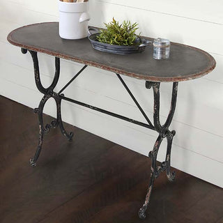 We promise wherever you decide to put this table you can't go wrong. It's just too BEAUTIFUL! The Galvanized top with patina finish the stunning STUNNING scroll detailing the artist incorporated into the base of this table is a statement in itself!