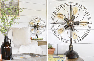 We present to you this absolutely ahhhhmazing and oh so GORGEOUS Vintage Fan Lamp and we are looooving everything about it! The retro 1950s vibe, super fun and super unique look AND that rustic chippy blue finish we can’t get enough of! Not to mention this antique-inspired table light fixture is priced MUCH less than anywhere else we’ve seen!