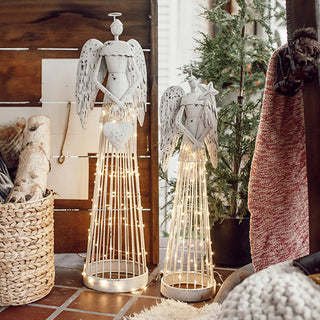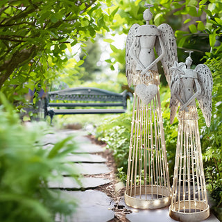 Let us introduce our lovely pair of Pre-Lit Antiqued Angel Statues. These Angel Statues are quite special because they have an old-fashioned look with their carefully made vintage-style finish. What makes them even more charming is that they come adorned with fairy lights that give off a soft, warm glow, making them look even more beautiful.