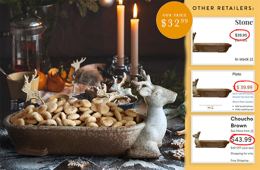 Place this stoneware deer dish out on your coffee table or kitchen counter to hold all your yummy cookies and snacks! We can see this on your entryway table filled with individually wrapped candies, mints, or chocolates for your guests to grab! Use this in your bathroom and fill it with Q-tips, cotton balls, or even bar soap! This beauty is sure to receive tons of compliments and won’t go unnoticed! This is PERFECT for the holiday season.