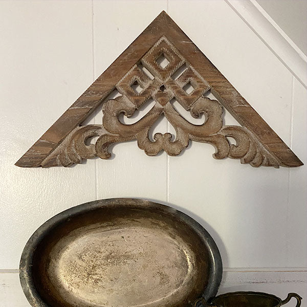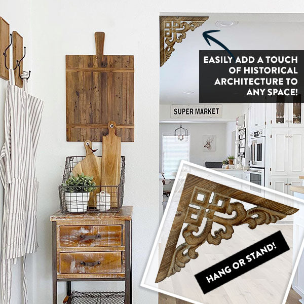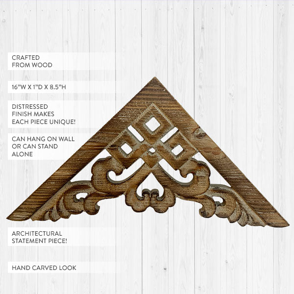 The PERFECT farmhouse detail that is seen in SO MANY popular TV shows and magazines... you home simply cannot go without this Intricate Wood Corbel Vault! It is a simple touch that will bring SO much charm to whatever space you use it in! The distressed details gives this piece personality and a timeworn appeal that can't be found in stores! The history behind these arched vaults speak stories to us! Once used as structural support for roofs by the Mayans, these now provide SO much character to any space... and a cool history too!