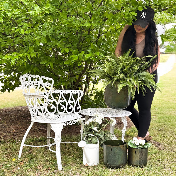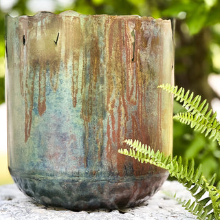 They come in this cool bronze-green color with natural variations that make each one unique. Perfect for whatever plants you're into - ferns, succulents, whatever! You get two slightly different sized pots, so you can mix up how you display your plants.