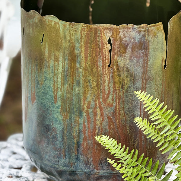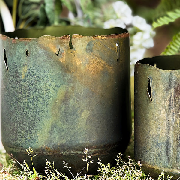 Jazz up your plant game with these sweet distressed metal pots - where plants meet style!