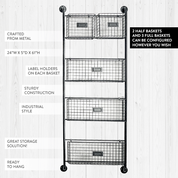 - 2 half baskets and 3 full baskets can be configured however you wish