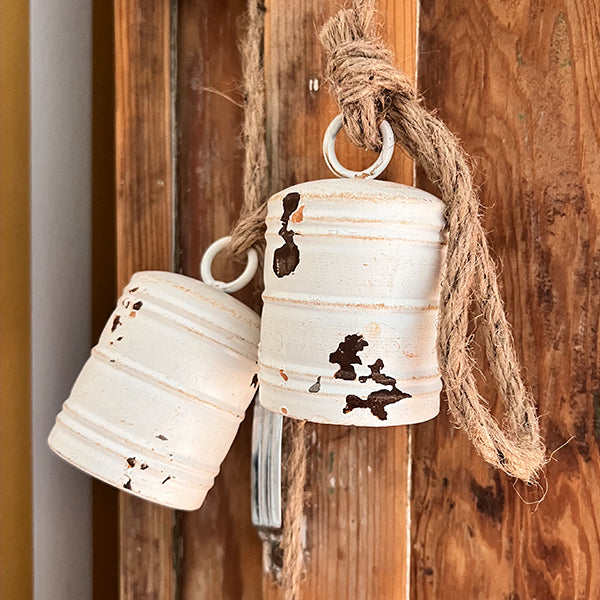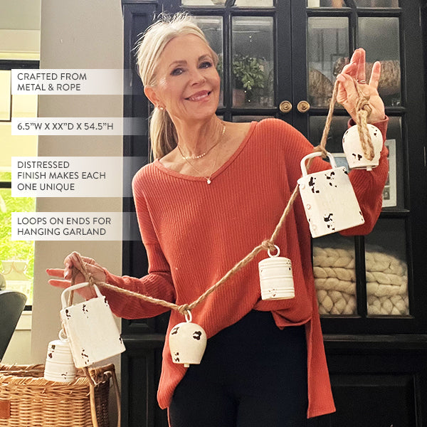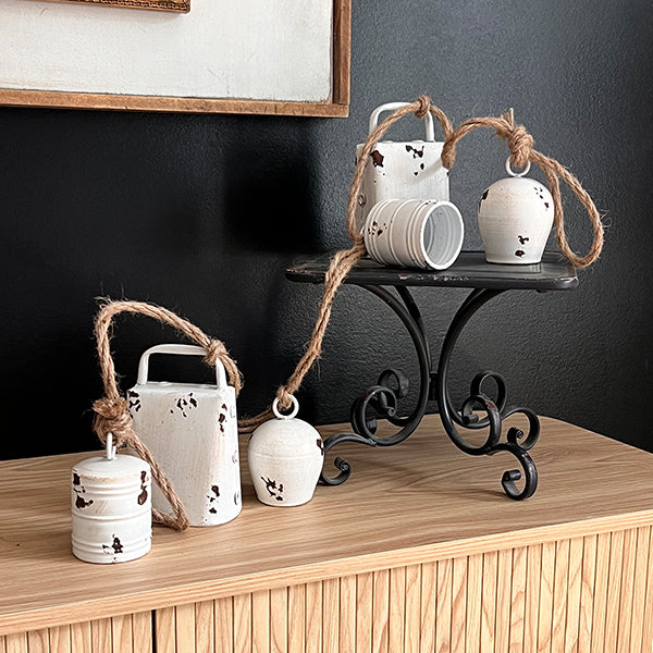 Our Chippy Bell Garland isn’t just pretty—it's rooted in heritage and history. Inspired by traditional cow bells once used across rural farms and countryside fields, each bell in this garland pays homage to that timeless rustic life. With their distinctive, larger sizes (no tiny, dinky bells here!) and heavily distressed white finish, these metal bells bring a bold, weathered charm you simply won’t find in today’s mass-produced decor.
