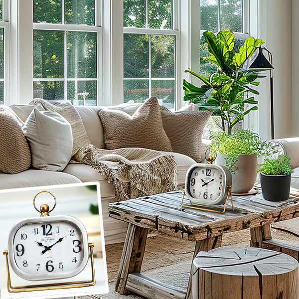 Vintage Aesthetic: Its antique finish evokes a sense of timeless beauty, while meticulous craftsmanship lends an air of luxury, ensuring that the Table Clock stands as a striking statement piece that complements any decor.