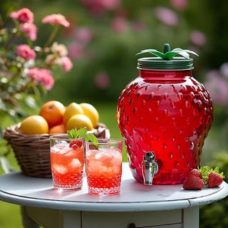 Serve up sweet summertime sips with our Classic Berry Drink Dispenser, a refreshingly fun way to quench your thirst! Designed in the playful silhouette of a bright red strawberry, this one-gallon beverage dispenser is the pick of the patch for parties, picnics, and backyard barbecues. Complete with a leafy green twist-off lid and an easy-pour spout, it makes drink time both functional and fabulously fruity.