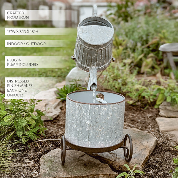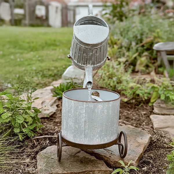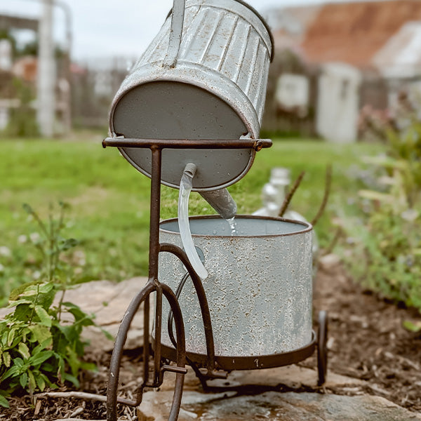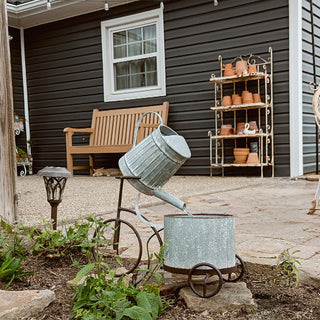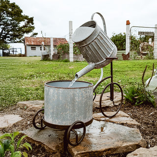 Warning: May cause serious porch envy! This Rustic Iron Bicycle Metal Fountain is the ultimate conversation starter your garden or entryway has been missing. With its charming bicycle silhouette, watering can spout, and farmhouse planter base, this beauty brings both motion and melody to your space. Water gently pours from the can into the planter below, creating a soothing soundtrack for your outdoor moments.