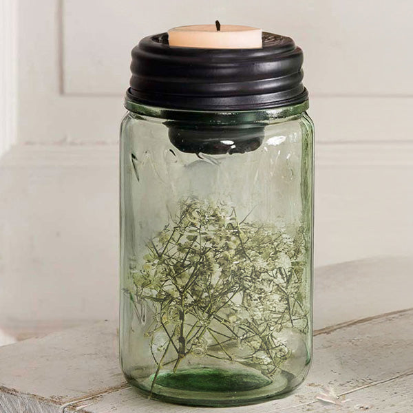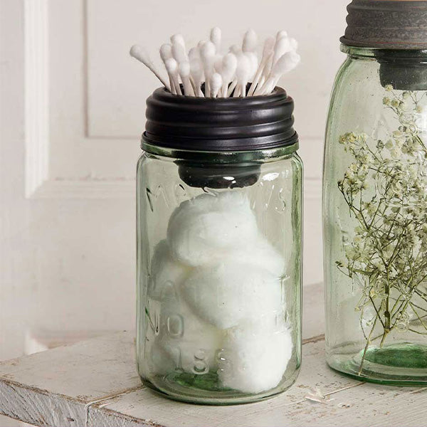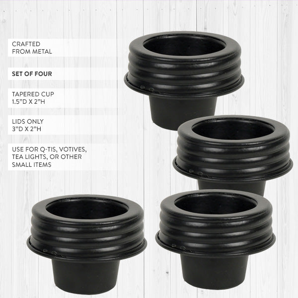 Each lid features a 2-inch tall tapered cup (1.5 inches at the base) that creates the perfect drop-in holder for Q-tips, cotton balls, tea lights, or any small items that usually end up scattered across your bathroom or vanity. The 3-inch diameter fits standard mason jars, and the black metal finish brings that farmhouse-meets-functional aesthetic people actually want in their spaces.