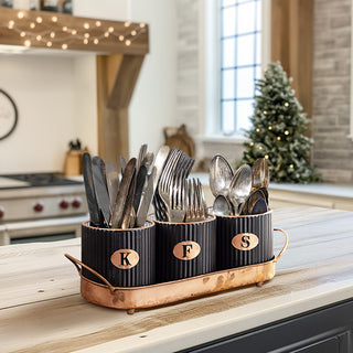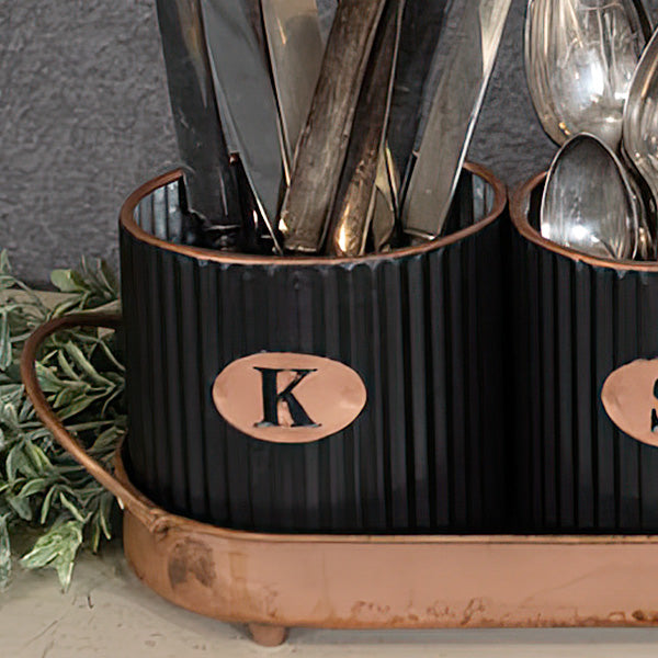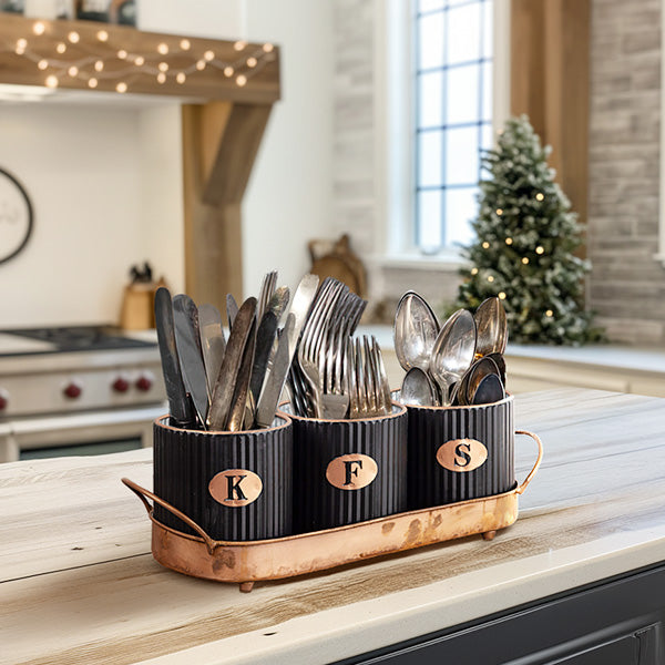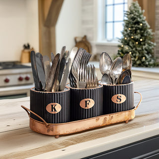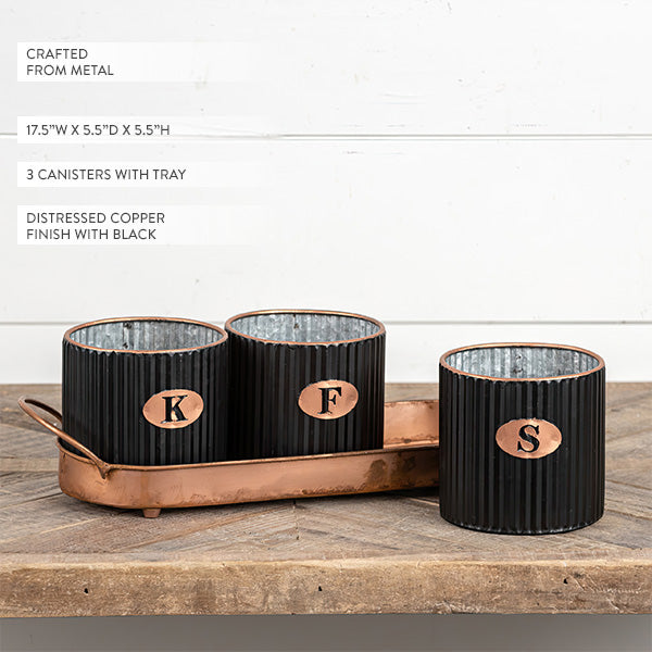 K. F. S.—what’s that stand for? Knife, fork, and spoon, of course! This chic Black Metal Canister Set with a gleaming copper tray is here to bring organization and style to your kitchen decor. Perfect for keeping your cutlery sorted and ready to transport, this set is as practical as it is eye-catching.