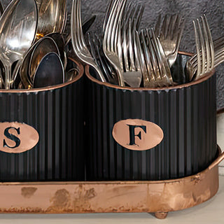 Turn your dining table into a conversation starter with this Black Metal Canister Set with Copper Finish Tray. It’s the perfect blend of functionality and flair—because your cutlery deserves a stylish home too!