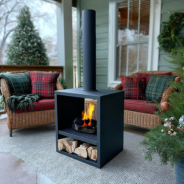 Weather-Resistant Iron: Crafted for durability, the frame can handle outdoor conditions while supporting the weight and heat of small wood stoves or chimineas.