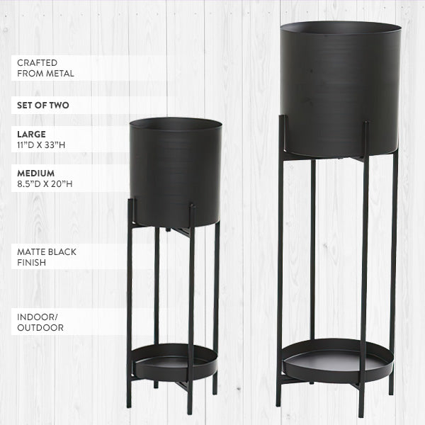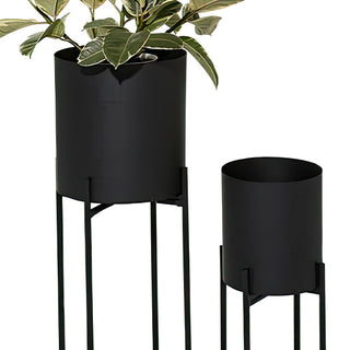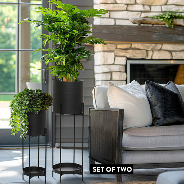 Transform your space with our Tall Matte Black Metal Planters on Stands, Set of 2, and enjoy the perfect combination of modern design and practical functionality. Order now to add a touch of elegance to your home or garden!
