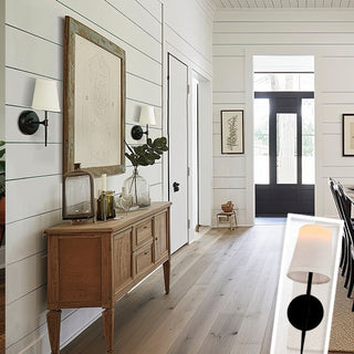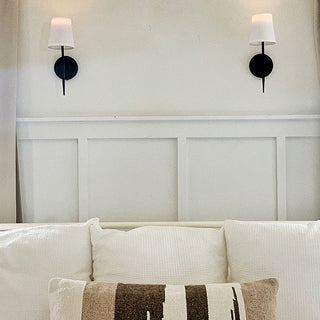 These Modern Farmhouse Wall Sconce Lamps are even better when bought in pairs! We are thinking one on each side of your bed over your nightstands or on either side of a bathroom vanity! The sleek black finish and beautiful linen shade will bring you a ton of style that will effortlessly flow with your existing home decor!