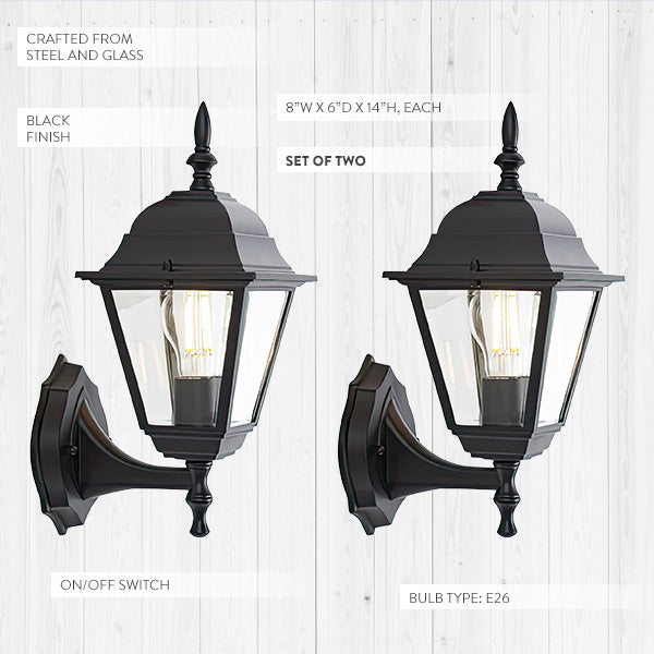 - Packed: One Set per package (you will receive two Outdoor Wall Sconces)