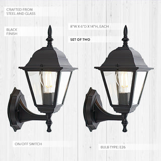 Introducing our Black Outdoor Wall Sconce, Set of 2, designed to illuminate and enhance the exterior of your home with a touch of modern elegance. Crafted with high-quality materials and sleek design, these wall sconces combine durability with sophisticated style, perfect for any outdoor setting.