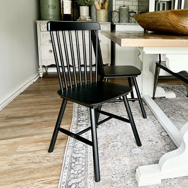 Introducing our Black Spindle Back Dining Chairs, a set of 2 that combines timeless design with unbeatable value. These chairs, known for their classic elegance and sturdy construction, are perfect for enhancing any dining space. Why spend more money on the same product when you can get the same high quality for half the price with us?