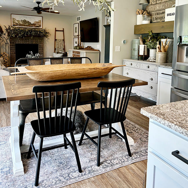 - Timeless spindle back design that complements both traditional and modern interiors.