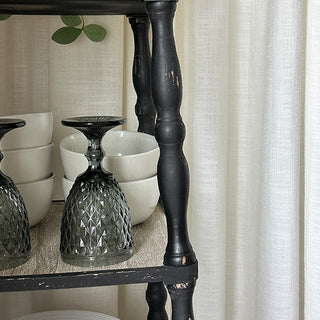 Imagine an old country cottage, nestled deep in the woods, where every piece of furniture tells a story. This 3 Tiered Distressed Black Spindle Shelf seems like it was plucked right out of that cozy retreat. With its weathered finish and spindle legs, it evokes memories of cherished heirlooms passed down through generations, adding a sense of rustic farmhouse charm to any room.