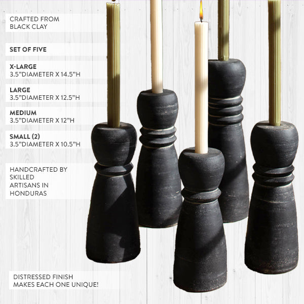 Introducing our Large Clay Black Taper Candle Holders, Set of 5 – the epitome of sophistication without the hefty price tag. You're not just getting candle holders; you're indulging in a statement of affordable elegance.