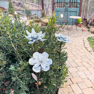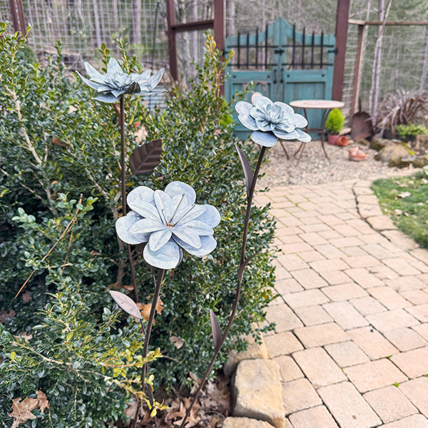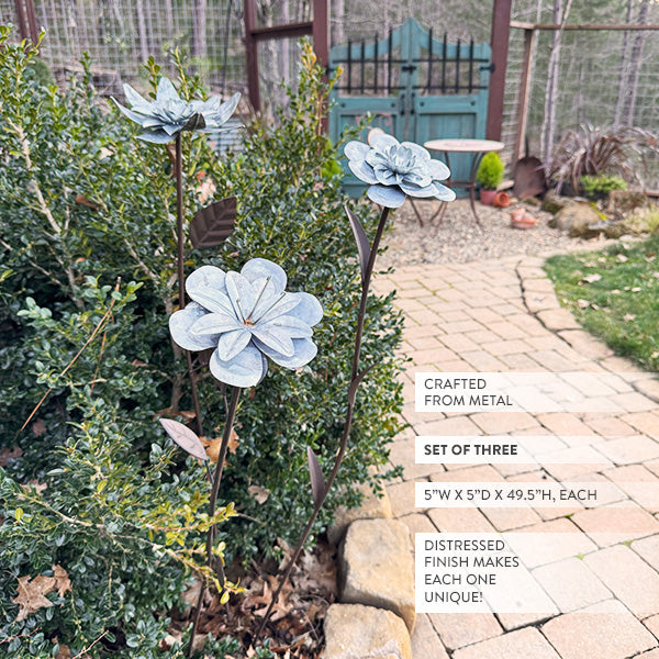 Welcome the beauty of spring into your outdoor space with this Tall Metal Blooming Flower Yard Stakes, Set of 3! Designed to bring a touch of rustic charm, these stunning metal flowers add an artistic flair to your garden, patio, or yard.
