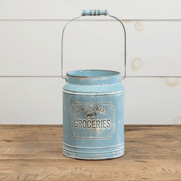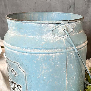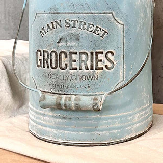 We just knew you would love it once you laid eyes on it! Everything about this Blue Groceries Pail is just so PERFECT! The distressed metal finish, unique design and rustic appeal speak stories to us! We just loooove the vintage charm and character!!
