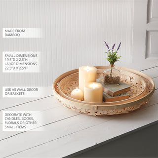 Medium: 19.5"D x 2.5"H - Packed: One Set Per Package (you will receive 2 Bamboo Baskets)