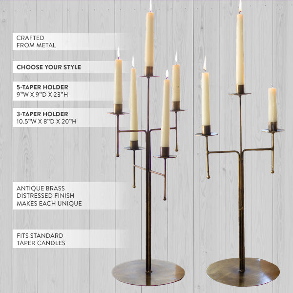 Transform any space into a haven of refined elegance with our Antique Brass Candelabra. Choose your size, create your ambiance, and let the timeless glow of candlelight become an extension of your personal style. Elevate your decor – order now and infuse your space with the enduring charm of antique brass.
