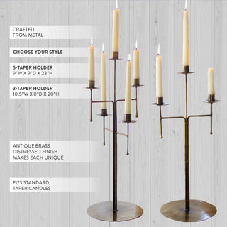 Introducing our Antique Brass Candelabra – a timeless centerpiece that allows you to curate your own style. This elegant candelabra is not just a holder for candles; it's an expression of your unique aesthetic.