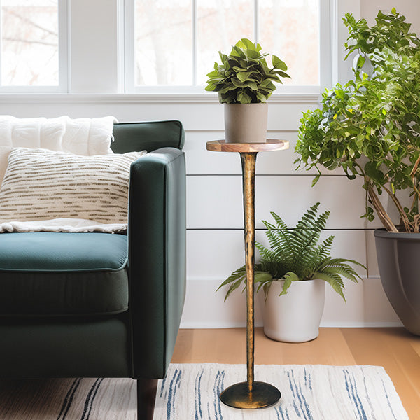 Elevate your space with our Antique Brass Cocktail Table. It boasts a lustrous acacia wood top for timeless elegance. This table isn't just furniture; it's a conversation starter, a focal point that ties your room together.